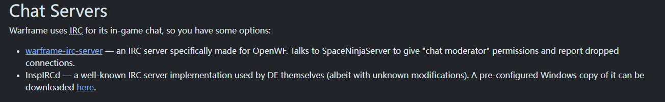 在OpenWf官网中可以看到Irc-Server的git地址